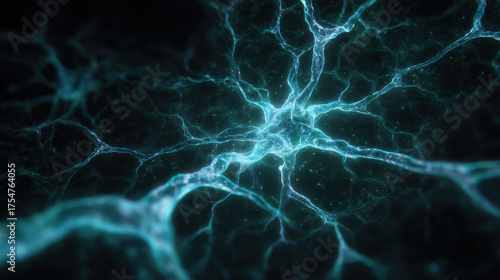 Fototapeta premium Glowing blue neural network lines form intricate web, evoking sense of...