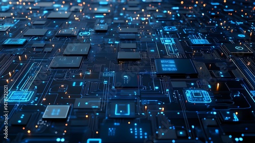 © STDG, Obraz premium Glowing Blue Nodes Network with Captivating Visuals in Technology