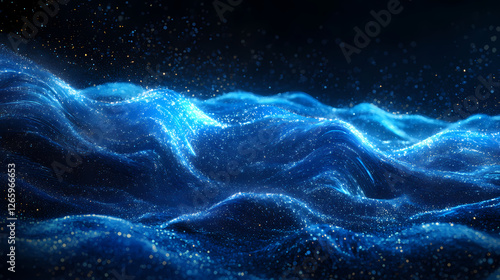 Fototapeta premium Glowing blue ocean waves on a dark canvas with sparkles and glitter, waves,...