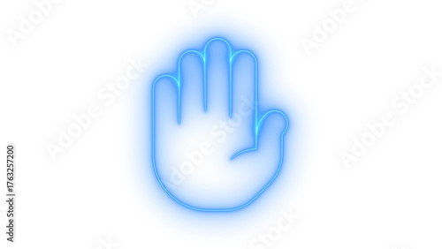 © rashida26, Obraz premium Glowing blue outline open palm hand gesture icon vector set. Outline glowing blue stop hand gesture Icon on transparent background vector image.