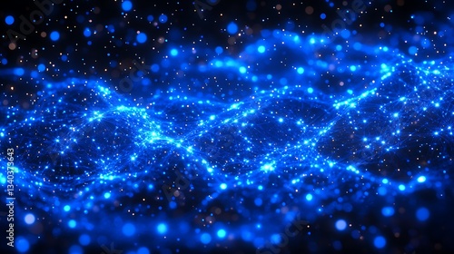 © iyo, Obraz premium Glowing blue particles forming a wave.