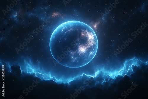 © barber, Fototapeta premium Glowing blue planet in nebula.