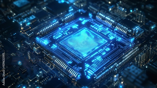 Obraz premium Glowing Blue Processor on a Motherboard