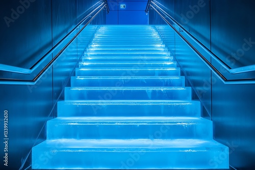 Obraz premium Glowing Blue Staircase Modern Architecture Interior Design