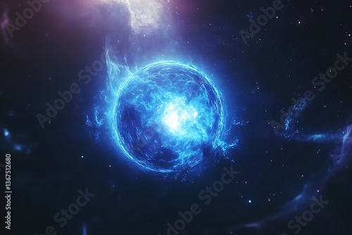 © Sams, Obraz premium Glowing Blue Star with Nebula in Deep Space Background Image