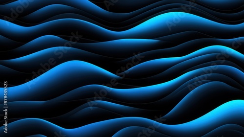 Obraz premium Glowing Blue Waves on Black Background, a captivating visual of luminous blue...