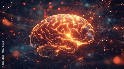 Fototapeta premium Glowing Brain Network: A Digital Visualization of Neural Connections