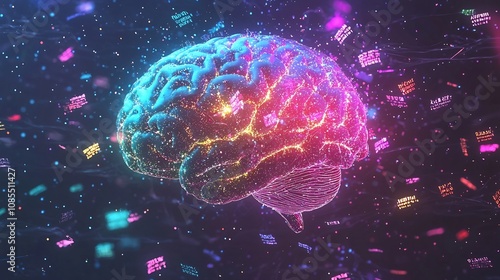 Fototapeta premium Glowing Brain with Holographic Sentiment Analysis Bubbles in Real Time