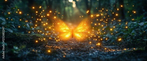 Obraz premium Glowing Butterfly In Dark Forest