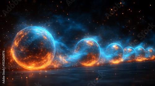 Obraz premium Glowing Celestial Bodies Moving Through Space