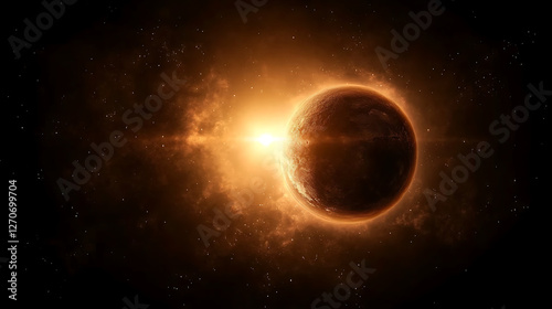 Obraz premium Glowing Celestial Body Orbiting a Distant Star Illuminating the Vast Cosmos...