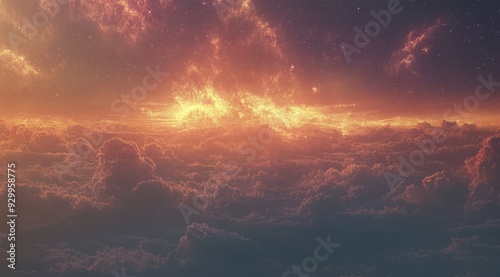 © Psykromia, Obraz premium Glowing Celestial Clouds Beneath Starry Sky