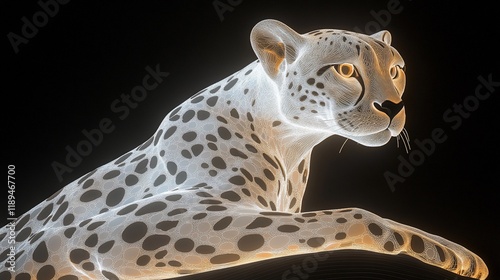 Naklejka premium Glowing cheetah resting, detailed fur, dark background.