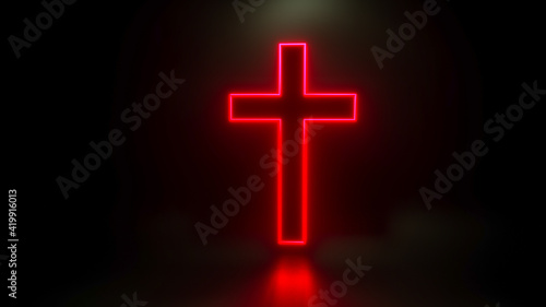 Fototapeta premium glowing Christian cross on a black background. 3d render illustration