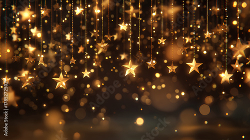 © suldev, Naklejka premium Glowing Christmas Lights. Gold Magic Stars Stock Illustration