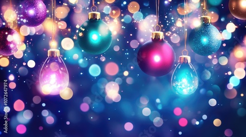 Fototapeta premium Glowing christmas ornaments in monochromatic hues with soft warm light...