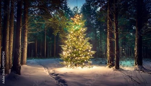 Fototapeta premium glowing christmas tree in the forest
