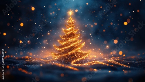 Naklejka premium Glowing Christmas Tree with Sparkling Lights and Dreamy Blue Background
