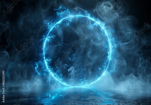 © Gustav, Obraz premium Glowing Circle in Blue Smoke