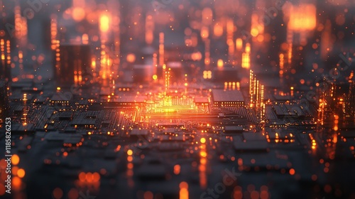 Fototapeta premium Glowing Circuit Board: A Digital Metropolis