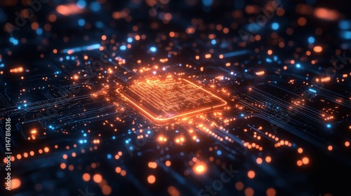 Obraz premium Glowing circuit board, central processor, digital technology.