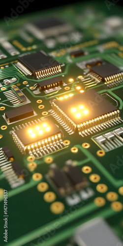 © Awildbulbasaur, Obraz premium Glowing Circuit Board Design with Intricate Electronic Components