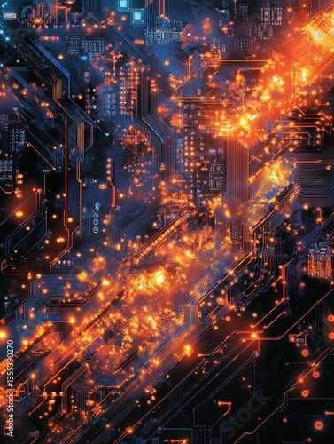Fototapeta premium Glowing circuit board futuristic technological abstract design.