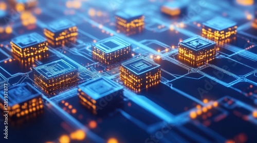 © Aetheria, Obraz premium Glowing Circuit Board: Microchips and Technological Advancement