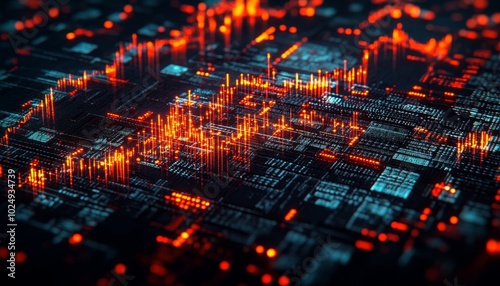 Fototapeta premium Glowing Circuit Board with Data Flow, Visualization of Artificial...