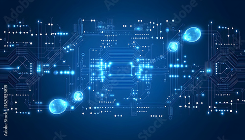 © mur, Fototapeta premium Glowing Circuit Board with Global Connections and Data Flow