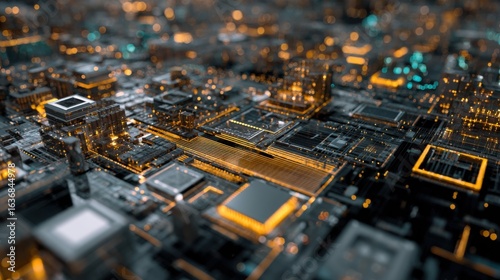 Obraz premium glowing circuits futuristic cityscape