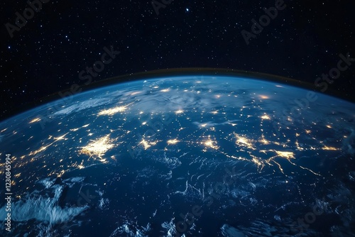 © Marko, Fototapeta premium Glowing cities illuminated from space view at night
