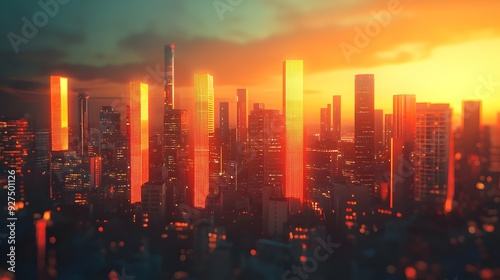 © Teerapat, Fototapeta premium Glowing Cityscape at Sunset.