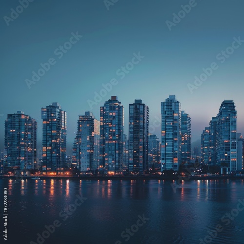 © gen_pick, Fototapeta premium Glowing Cityscape: Real Estate Website Background