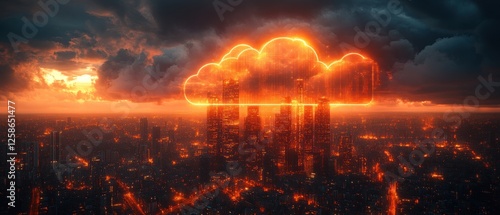 Fototapeta premium Glowing Cloud Above a Cityscape at Sunset