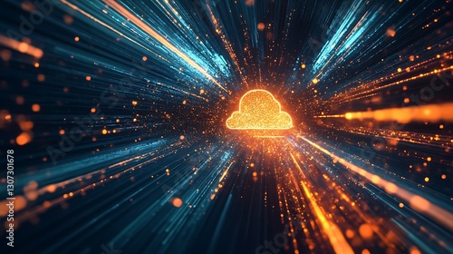 © zunitz, Naklejka premium Glowing cloud symbol surrounded by abstract data light streams
