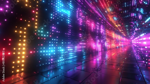 Obraz premium Glowing color lattice, wideangle, neon grid pulsating, vibrant, futuristic abstract backdrop