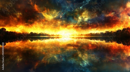 Naklejka premium Glowing Colors Over Calm Lake at Dusk