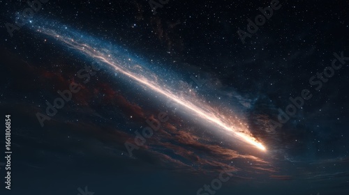 Fototapeta premium Glowing Comet with Bright Tail in Cosmic Night Sky Background