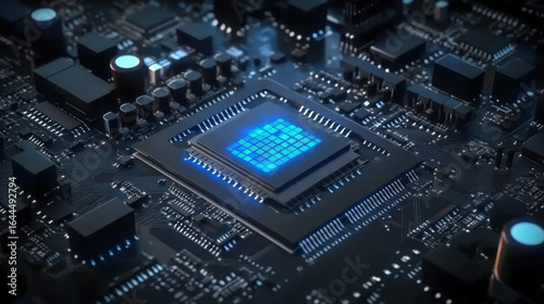 Fototapeta premium Glowing computer chip and CPU motherboard technology circuit board