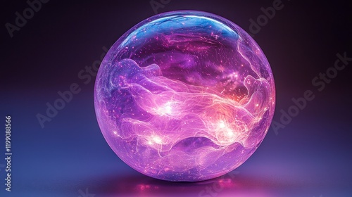 Obraz premium Glowing cosmic nebula inside a crystal sphere.