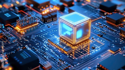 © terat, Fototapeta premium Glowing CPU Chip on Circuit Board - AI & Machine Learning