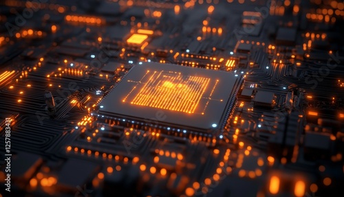 Fototapeta premium Glowing CPU, Circuit board with illuminated processor, Futuristic technology...
