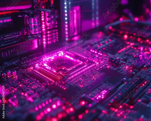 Obraz premium Glowing CPU on Circuit Board, Close-up