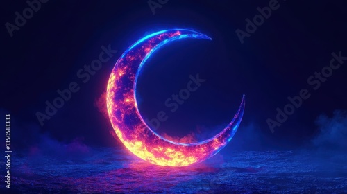 © Dragon, Fototapeta premium Glowing Crescent Moon Above a Dark Blue Sea