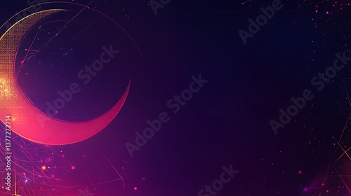 © Seputih, Obraz premium Glowing crescent moon shape abstract with digital network design