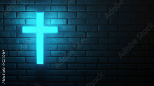 © Garadel, Obraz premium glowing cross on the wall