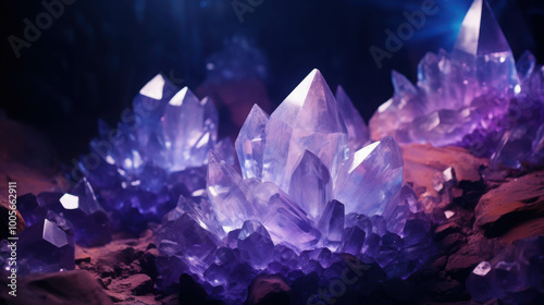 Obraz premium Glowing Crystals in a Dark Cave