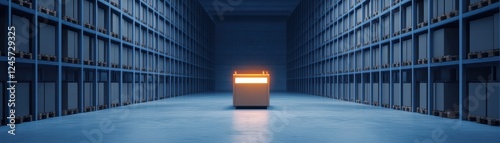 Obraz premium Glowing cube in archive corridor.