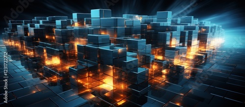 Obraz premium Glowing Cubes Cityscape; Digital Data Background